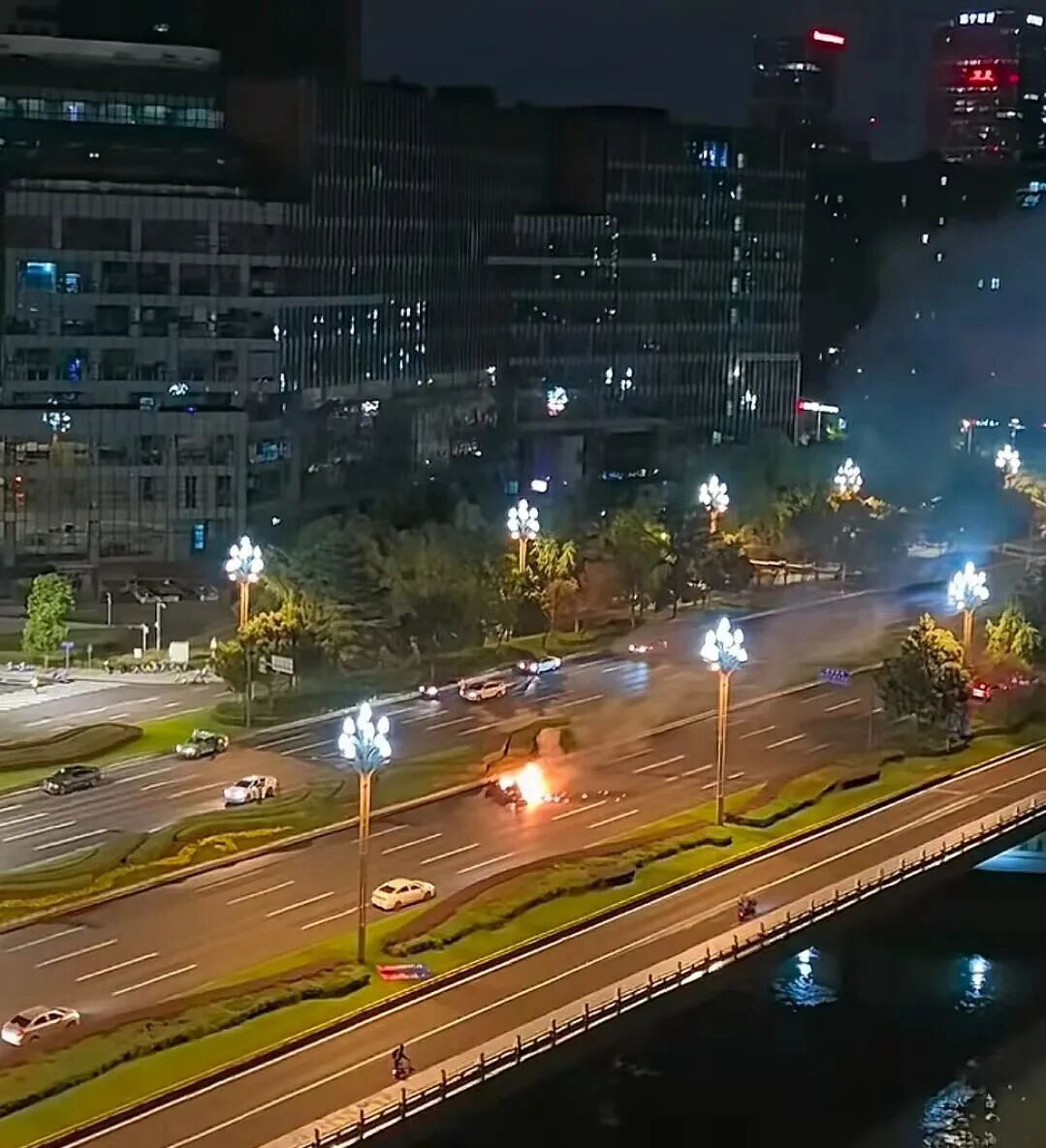 10月13日凌晨,四川成都天府大道发生一起严重的交通事故,一辆小米SU7在高速行驶中撞上中央绿化带后翻滚至对向车道并起火燃烧。